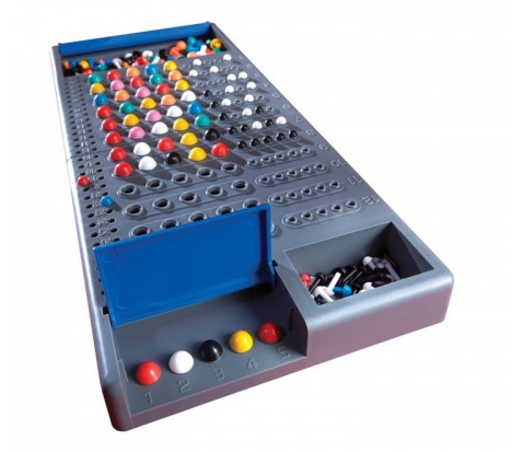Нужно отгадать загаданную соперником цветовую комбинацию. Выстраиваете свою, а он говорит сколько верных совпадений по цвету и по расположению. Вы отмечаете белыми и черными фишками количество совпадений. Делаете следующее предположение. И так пока не отгадаете.