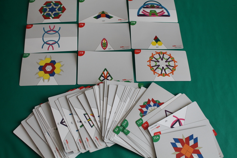 На одной стороне карточки изображен угол, который необходимо построить, на обратной -полученное полное изображение.