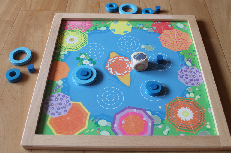 Цель игры: с помощью кубика расположить все свои дождевые капельки, состоящие из трех элементов, на игровое поле.