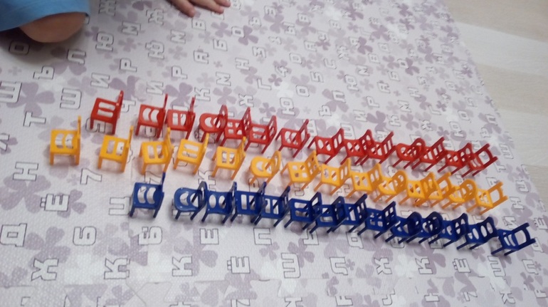 Строим стульчики по цвету.