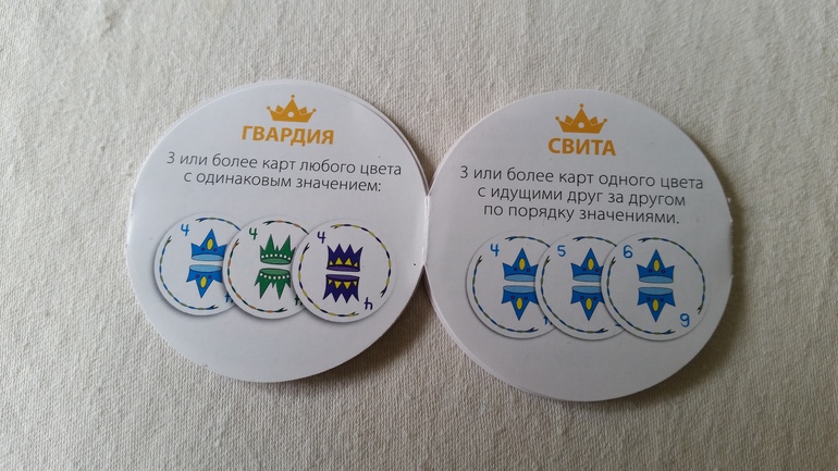 Сеты в игре называются Гвардии и Свиты. Тут прямо очень напоминает Руммикуб)))