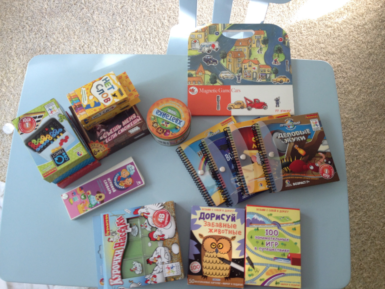 Я бы все же немного разделила игры на 2 группы-те в которые можно играть в лороге-в машине,самолете,поезде. И на те,которые мы берем в дорогу,когда едем на дачу и играем там.Для нас они тоже дорожные,потому,что я вряд ли потащу огромные коробки Выдерни морковку или Кукарачу,собирая и без того кучу всего для дачи.