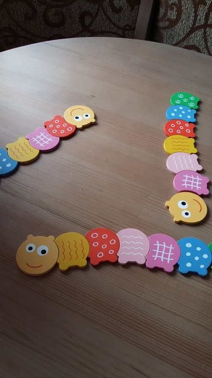 2. Вариант когда свою гусеничку нужно собрать в определенном порядке цветов и никак иначе.