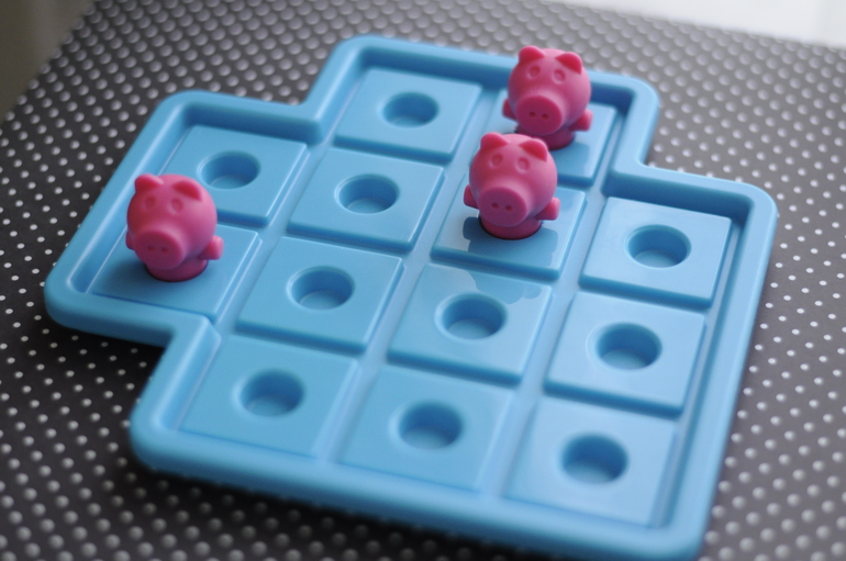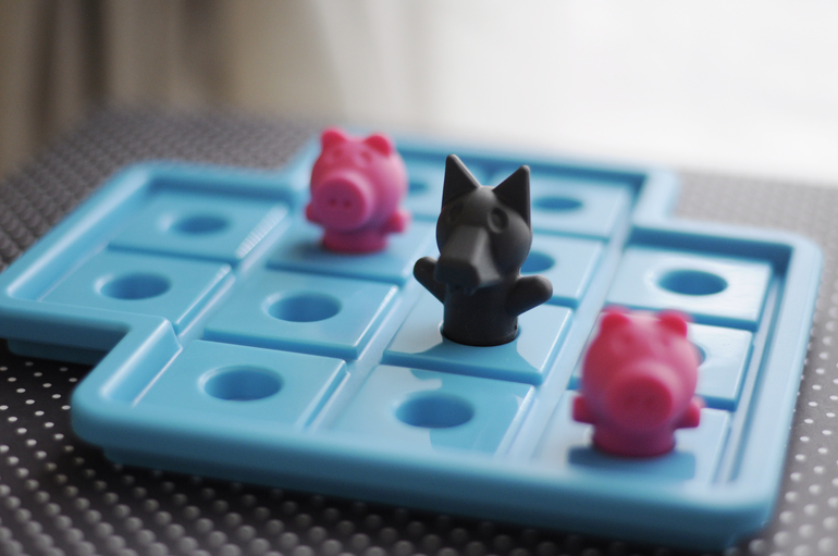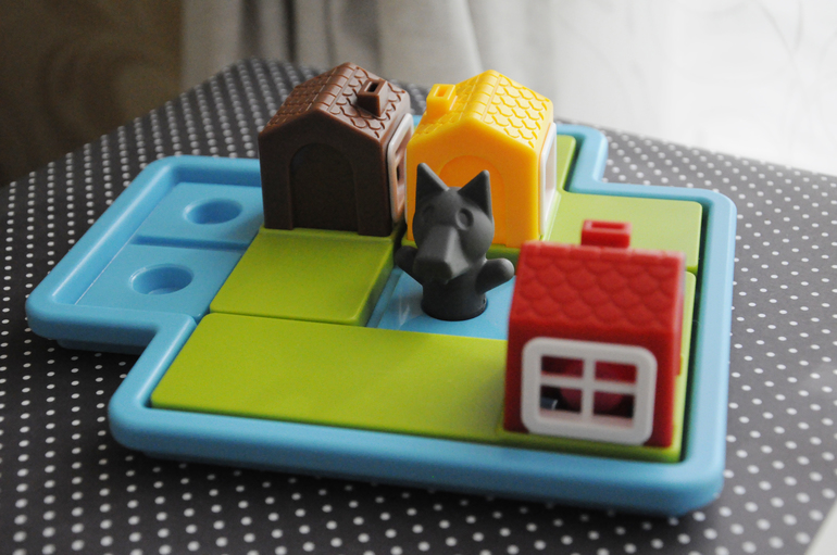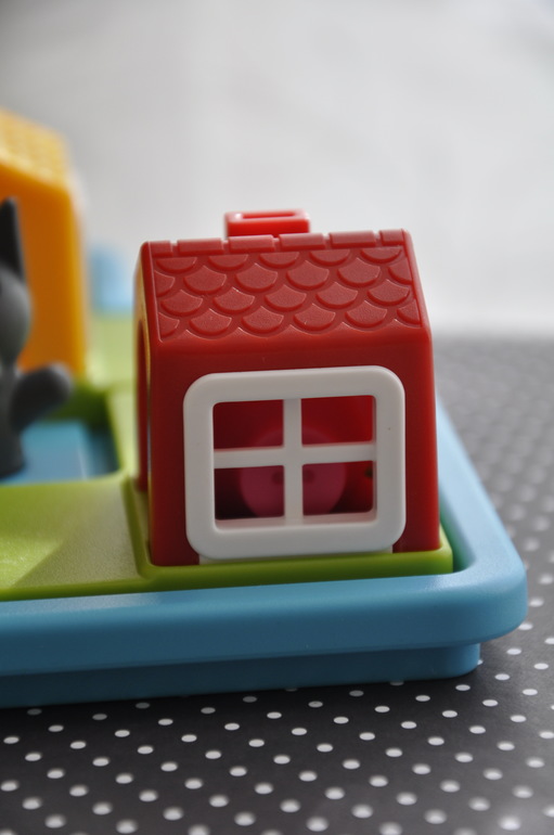 В чём суть? Есть два варианта игры. Первый - когда волка нет и нужно разместить на поле одновременно и поросят и домики. И второй вариант - когда волк на поле. Тогда размещённых поросят нужно спрятать внутри домика.
