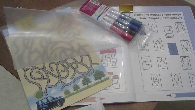 И тут , как говорится Эврика! Взяла папку уголок прозрачную, маркеры для доски и многоразовый лабиринт готов. Очень удобно всякие обводилки или задания по подготовке к школе, где что-то надо обвести, соединить, вписать. Все тетради стали многоразовыми (и младшему можно не покупать).