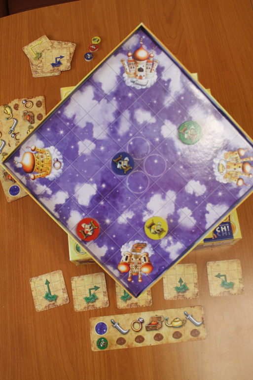 У каждого игрока есть воя карта-задание, где указано, в какой последовательности необходимо собрать сокровища. В каждом углу поля находится волшебный замок, где и хранятся нужные сокровища. Игроки перемещаются на своих коврах-самолетах с помощью 5 карт-движений. Использованная карта переворачивается вниз, и в следующий раз игрок выбирает только из 4 карт и т.д. Когда все карты будут использованы, они вновь становятся доступны игроку.