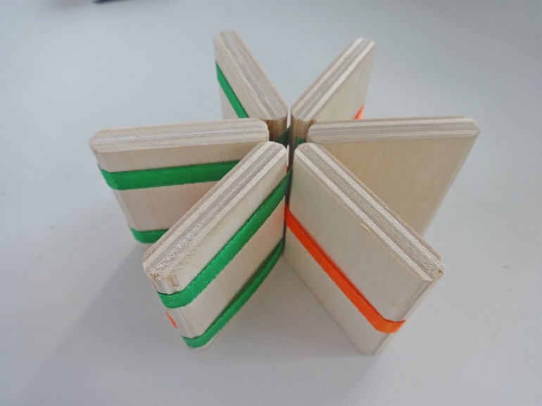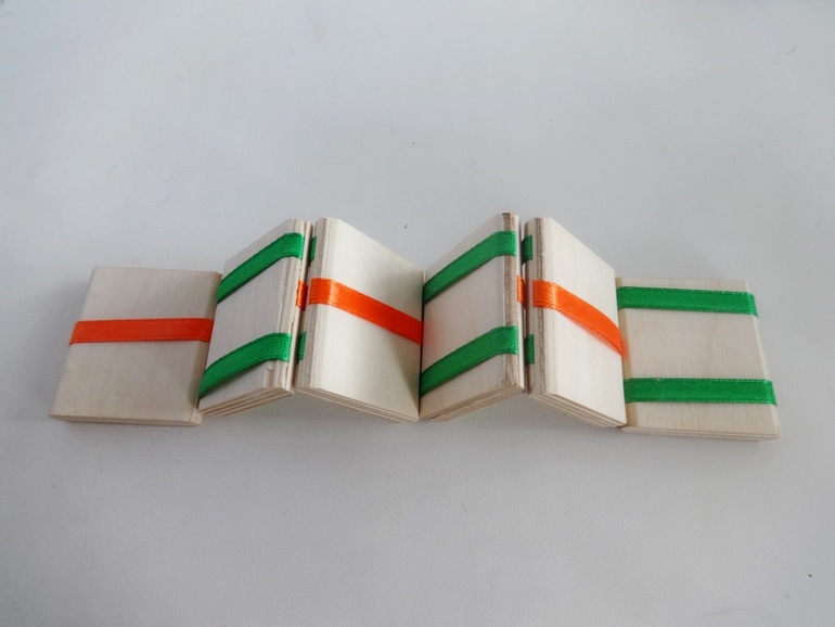 Лента из квадратиков (наверняка она имеет название, но я его не знаю). Помню, что в детстве что-то подобное сами делали. Ее тоже интересно покрутить в руках.