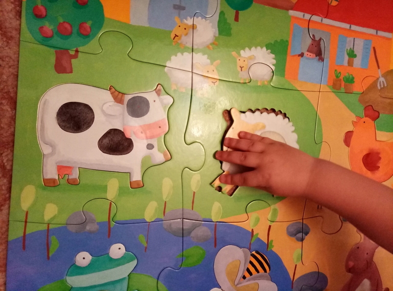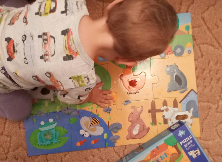 Теперь Джеко. Начитавшись восхищенных отзывов, тоже не смогла пройти мимо этой фирмы) Большой пазл гигант с тактильными вставками Ферма.