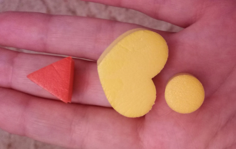 Набору уже больше 10 лет,еще дочка играла. Представляет собой 10 двойных основ из мягкого, прочного пенополиэтилена, на одной половинке цифра, на другой соответствующее количество каких либо геометрических фигур. Основы маленькие, 10,5 см на 5,5 см, толстенькие, 1 см, прокусить тяжело, но одной у нас имеется след от такой попытки) Фигурки тоже очень мелкие, с увеличением количества уменьшается размер.