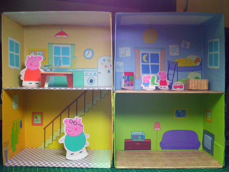 Теперь по вечерам, когда сын ложится спать, делаю по паре новых элементов для домика, а утром сын бежит посмотреть, что нового появилось домике Пеппы, пока он спал.