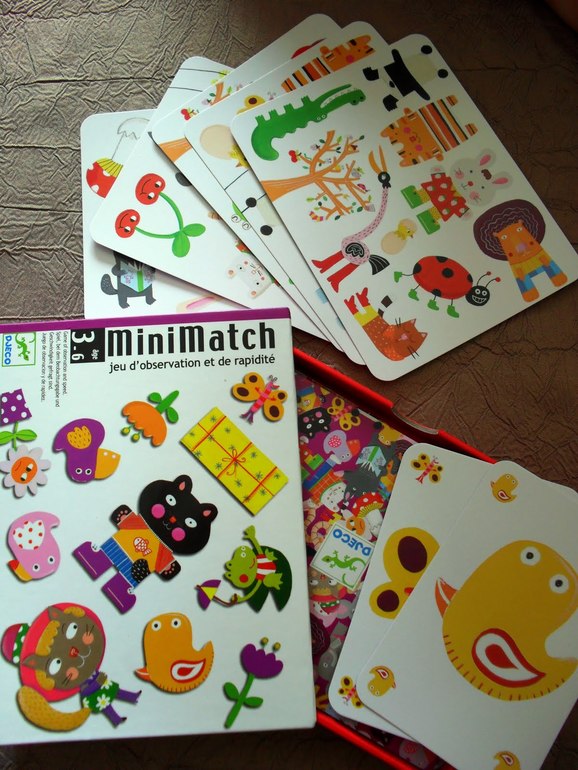 С сыном нам вдвоем на скорость играть не слишком честно - естественно, я быстрее. Потому мы чуть поменяли правила. И играли "без скорости" - оба находили на большой картинке изображение со своих карточек и одновременно сбрасывали. Побеждал тот, кому больше повезло - чьи изображения на больших картинках раньше попались.