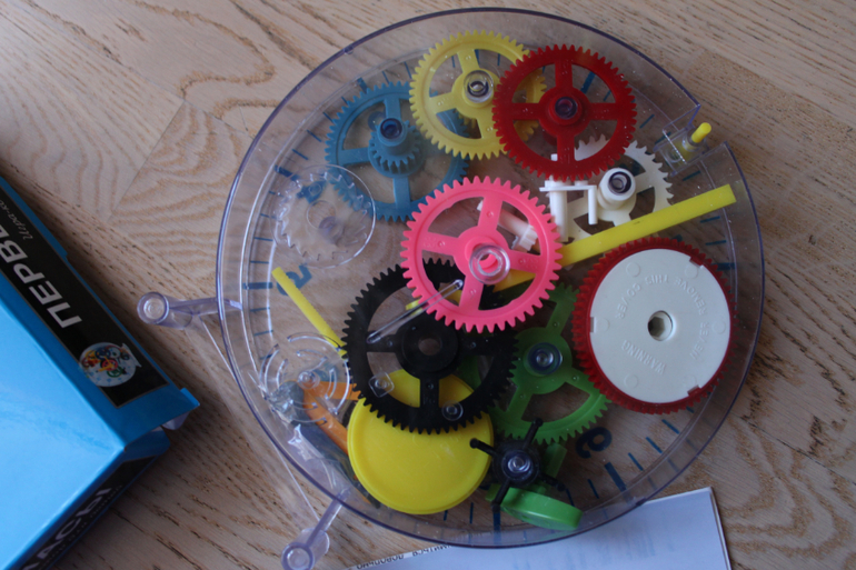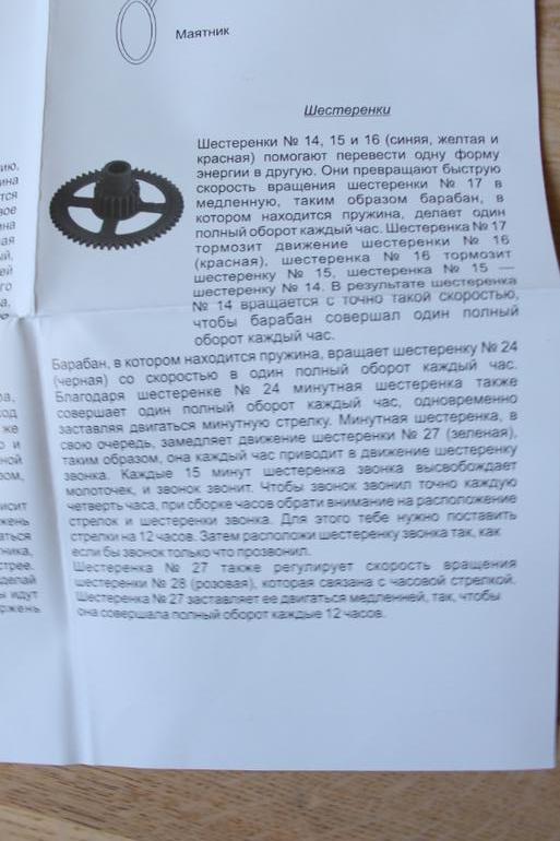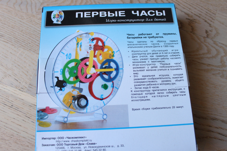 Недавно Дима рассмотрел, что у часов внутри тоже шестерёнки и стал расспрашивать об их устройстве поговорили, посмотрели картинки и видео в интернете. И тут оформляя заказ на Грузи и вези искала, чем пополнить заказ и нашла это чудо!!!