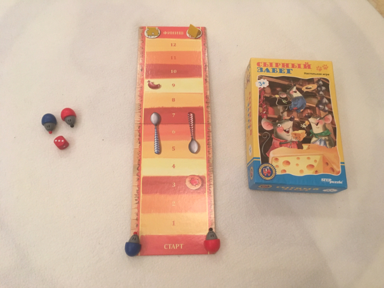 Интересует только кусочек сыра, который мышка приносит в конце игры. Мне до сих пор непонятен один из пунктов правил - мышки не ходят, а прыгают друг через друга? А куда прыгать-то? Там всего 12 полей...) поле двустороннее, есть ещё несколько вариантов игры.
