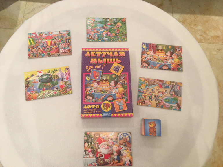 Лото Летучая мышь - чем-то напоминает Ассоциации для деток постарше. Помимо карточек на каждой из карт надо найти летучую мышь.