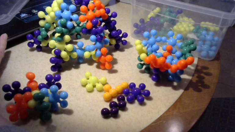 Конструкторы, мозаики, пазлыОчень симпатишный. Приятный пластик, тяжеленькие детали. Мои отломали несколько шариков, но у них талант отломать неотламываемое. 😤 Кстати, они классно крутятся как волчки. Напомнил Спутник гения, рядом его детали. На фото четыре набора.