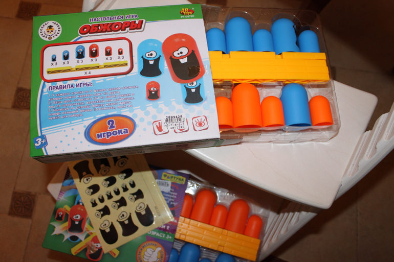 Второе приобретение - аналог детского Гобблета. (тут Наташа рассказывала) "Обжоры" и "Кто кого". Заказала оба варианта т.к. было любопытно есть ли отличие при одинаковой цене. Никакого-только коробка. Матовый приятный пластик. Напомнил мне материал парковки от недешевого бренда Smoby. Мордашки необходимо наклеить. Своим оставила Обжор только из-за названия. Второй экземпляр подарим соседскому мальчику на н.г. Эта покупка прекратила мои метания между взрослым и детским Гобблетом. Если игра понравится буду медитировать на взрослый. Наташа! Спасибо!
