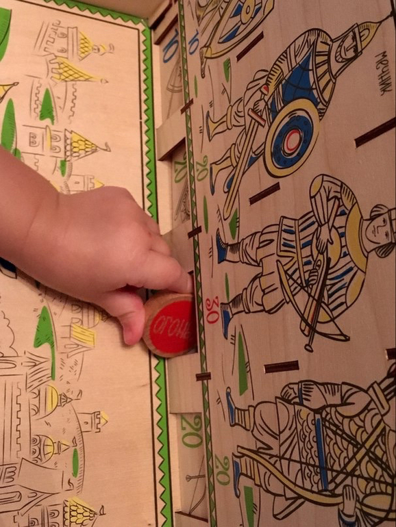Вот такая простая и в то же время очень азартная игра. Здесь не нужно думать головой, а можно просто расслабиться и забивать голы:) Как мне кажется эта игра отлично подходит в качестве первых настольных игр- это легко и интересно, ребёнок сам может в неё играть.