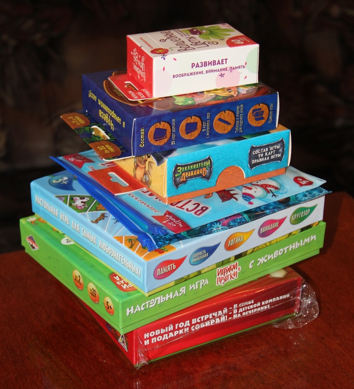 В общем из настолок у нас несколько ходилок, "Волшебный город" от степ пазл да обезьянки на пальме. Об остальном только мечтала.