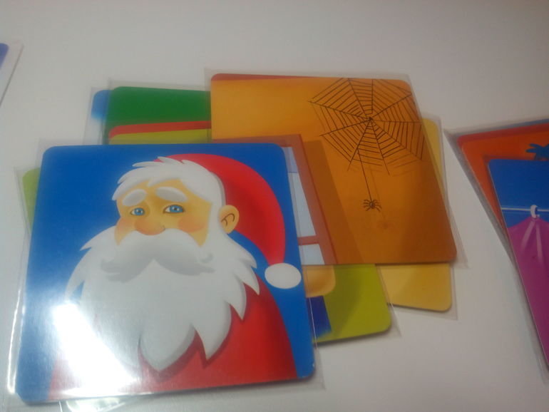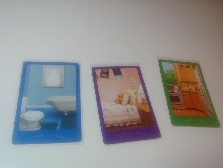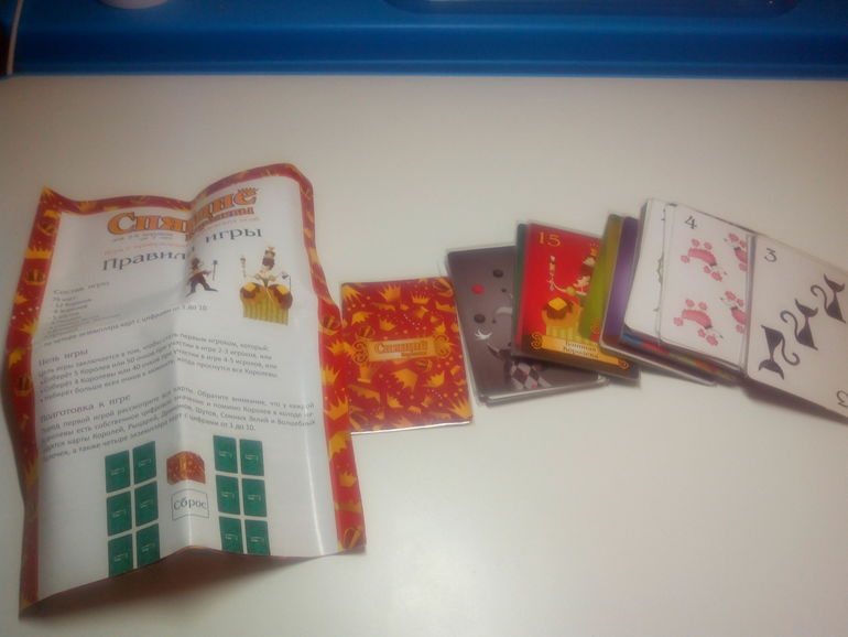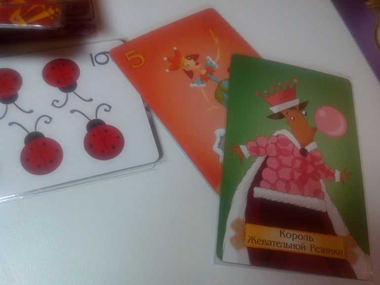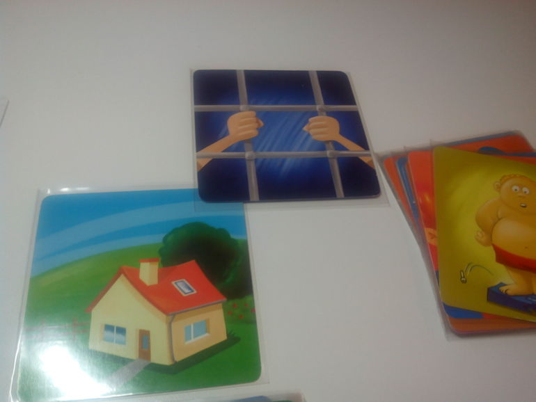 Двухсторонние карточки с картинками, есть несколько вариантов игр, например, можно спорить о чем-то, аргументируя карточками, пытаясь подстраиваться под них.