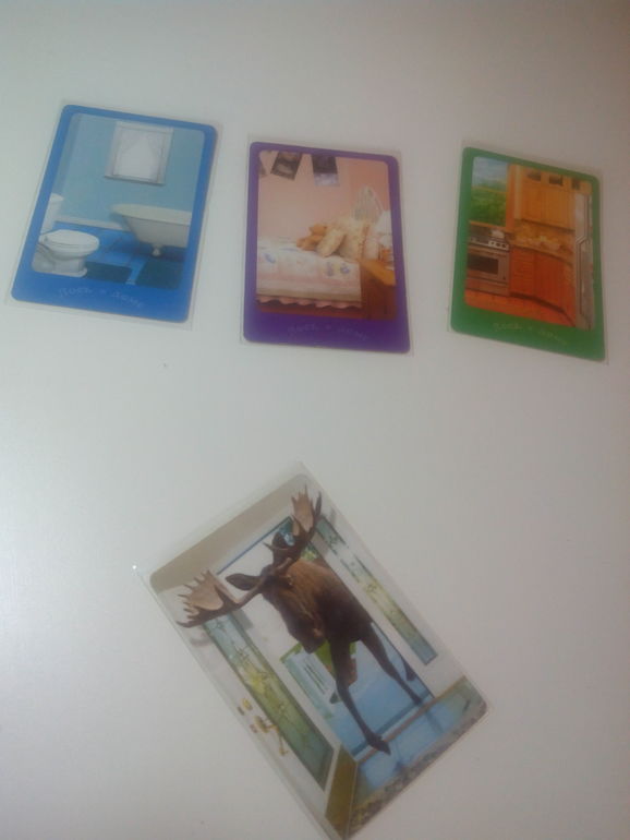Итак, раздается каждому по 4 карты. Чем больше людей, тем интересней, можно подкидывать карты любому игроку. Открытых обычных комнат (без дверей и лосей) тебе могут поставить не больше 3 шт.
