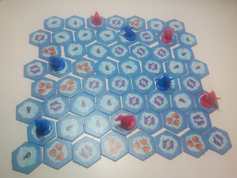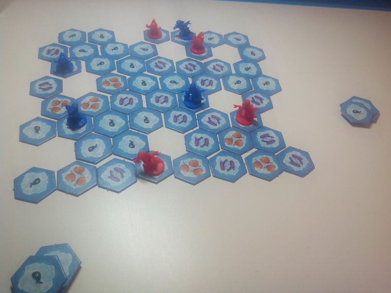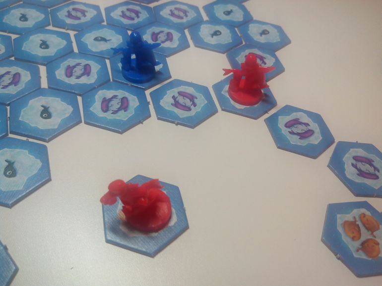 Количество пингвинчиков зависит от количества игроков, например, если 4ро игроков, то по 2 шт. Ходить можно за ход на сколько хочешь клеточек,но не меняя траекторию и не перепрыгивая других пингвинов. Как только сошел с клеточки, на которой останавливался в предыдущий раз- она идет в копилку к тебе.