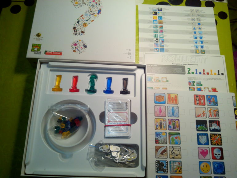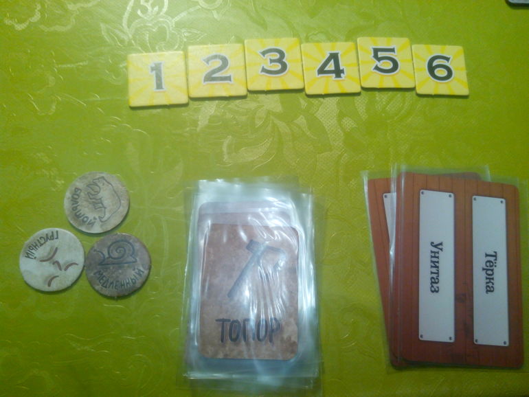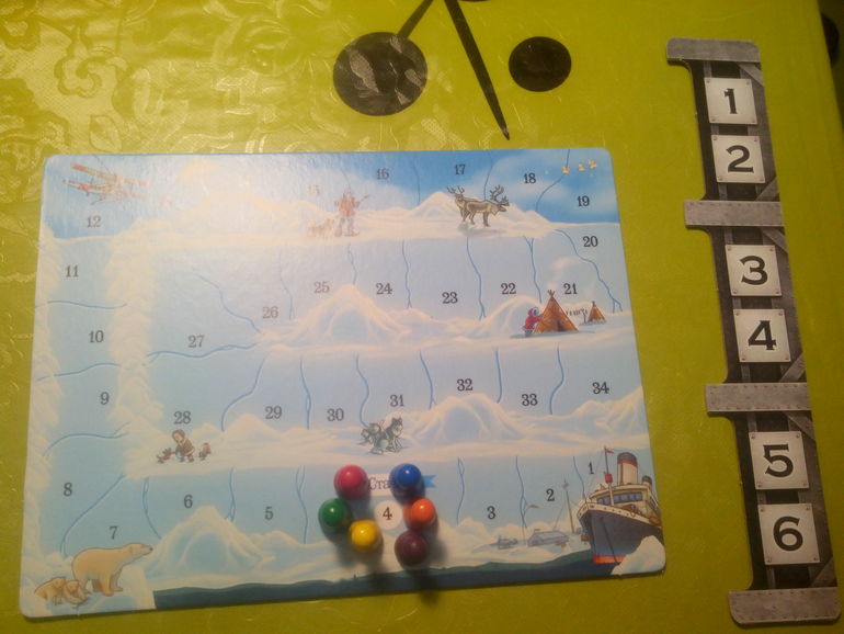 Сфотографировала и забыла добавить игровое поле (блокнот с отрывными листами) с кубиком сюда же положить, но подключите воображение и считайте они есть на фотографии:) На них можно взглянуть в общей коробке "сумасшедшей версии", где лежат игры.