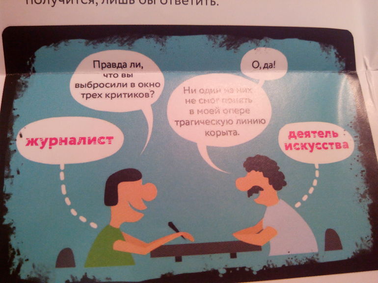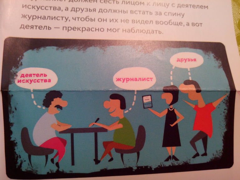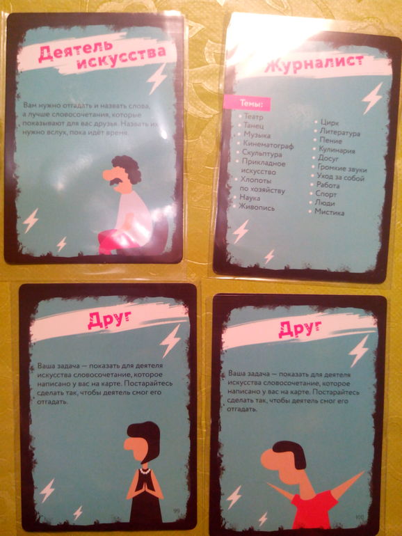Раздаются карточки профессий по одной, в закрытую. Они все нарисованы с эдаким юмором, кстати. Вот примеры: