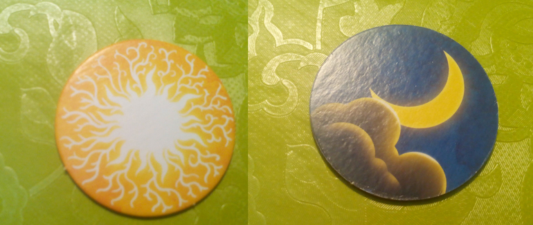 Можно играть совсем без круглой карточки "ясень\темень", но она помогает заработать больше очков при её использовании: