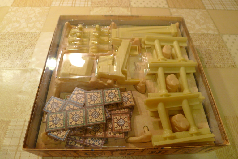 То есть за один ход можно выложить мозаику, рядом поставить колонну и потом построить ворота и за это получить много бонусных очков (5 талантов за три построенных объекта и еще за пальмовые листья для мозаики, за детали мозаики рядом с колонной и за колонны рядом с воротами).