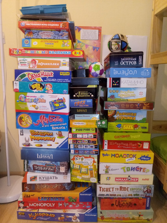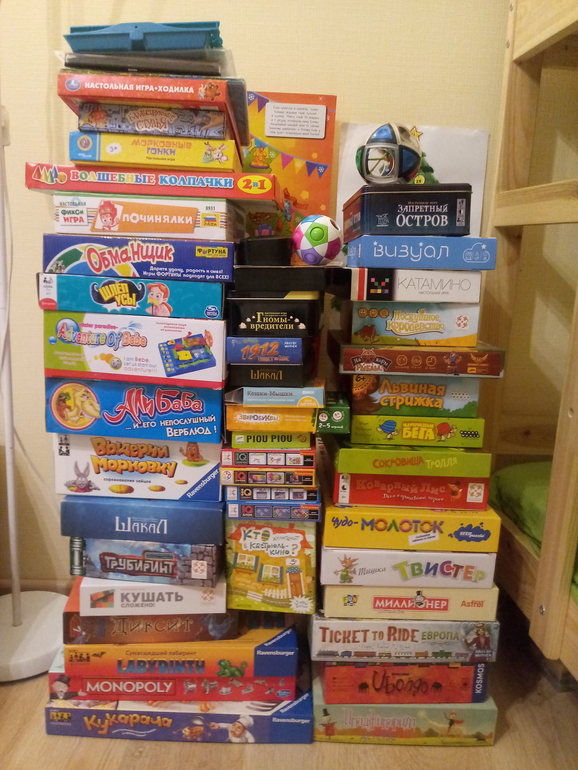 игры для детей школьного возрастаПока дети заняты, нашла время и выстроила башни из игр, которые еще не были в моих обзорах. Башни получились тяп-ляп, но уж очень спешила, в любой момент притопал бы младший с прогулки и был бы "салют" из карточек, кавардак и прочее: