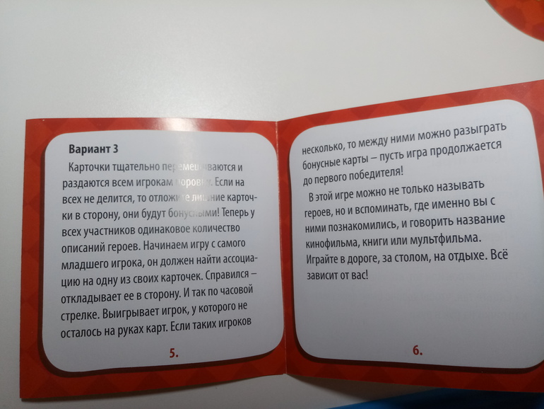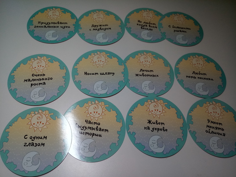 Мы играем так: кто-то зачитывает характеристику с карточки и кто первый вспомнит- кричит "знаю!" и называет персонажа подходящего. Чуть постарше когда будут, тогда можно будет уже с версией игры, где соревнуются, кто же больше подберет персонажей на данную характеристику.
