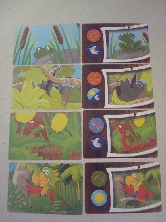 • если на карте нет выпавшего на кубике символа, вы ошиблись и сфотографировали не то животное. Положите карту под любую из пяти стопок