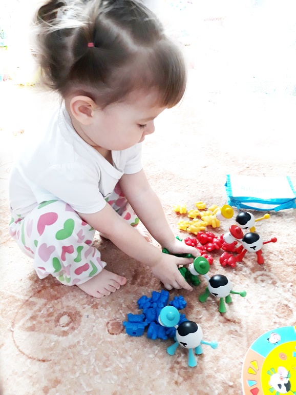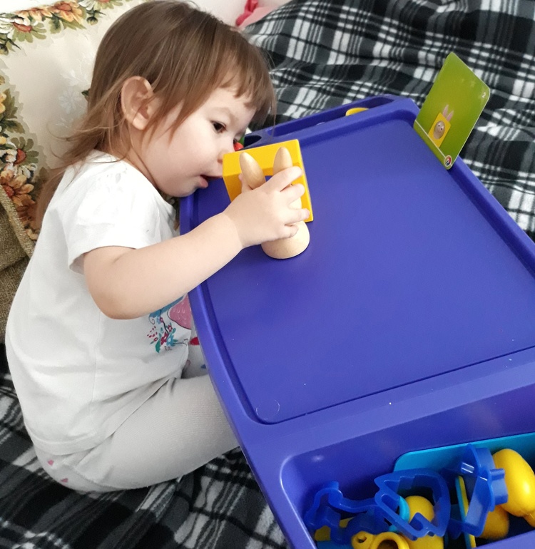 Играли немного не по правилам. Домик не строили, я решила, что Катю это будет отвлекать и она переключится на конструирование).