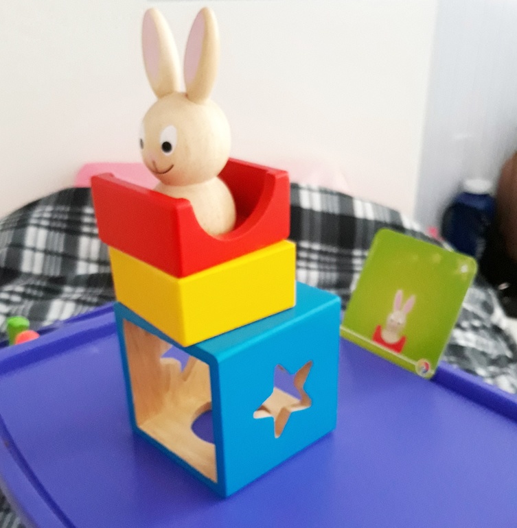 Следующая игра долгожданный прорыв! Застенчивый Кролик от Бондибон. Предложила карточку на авось, и неожиданно Катя сложила! Прошли первые три карточки 😊