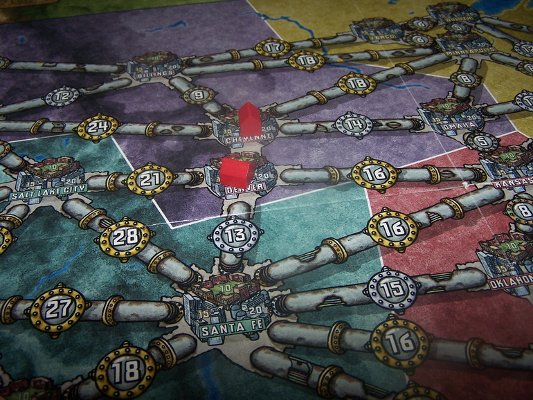 А красный заплатит 23 электро, построив всего один дополнительный домик (у него дорогое соединение)