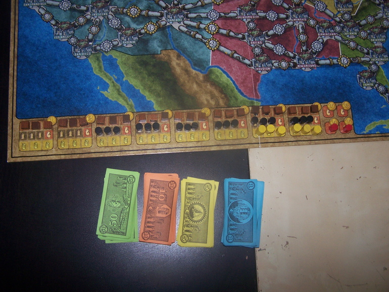 Еще нужно подготовить игровое поле, расставив на шкале топливо, ну и выбрать банкира, который в процессе игры будет заведовать финансами, и кого-то, кто будет в конце каждого раунда по схеме добавлять ресурсы.