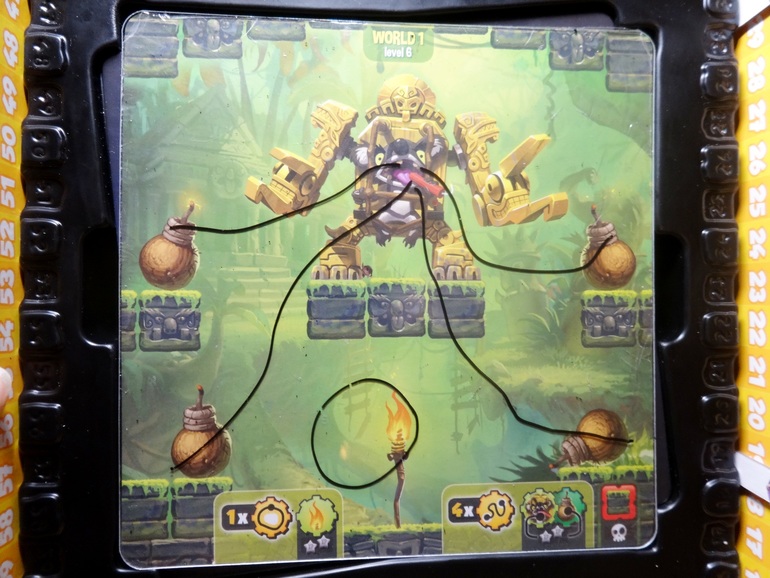 Вот - из 15 звезд я смогла отметить точками только 5, зато не попала в смертельную ловушку, всего в 2 простых (за каждую -1 очко) и не задела бомбы! Дочка на этом уровне заполучила бомбу и попалась в ловушку с черепом ((.