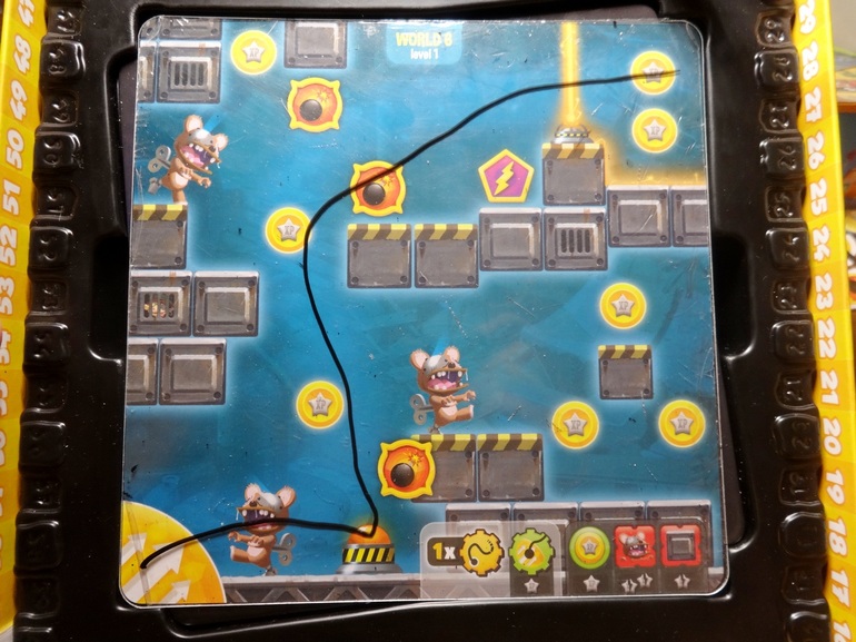 Но даже и это еще не все сложности. На некоторых уровнях есть лазерные барьеры; чтобы пройти через них, их нужно сначала отключить. Неправда ли, все это уже давно смахивает на компьютерную игру? Только операции надо производить не кнопками, а фломастером.