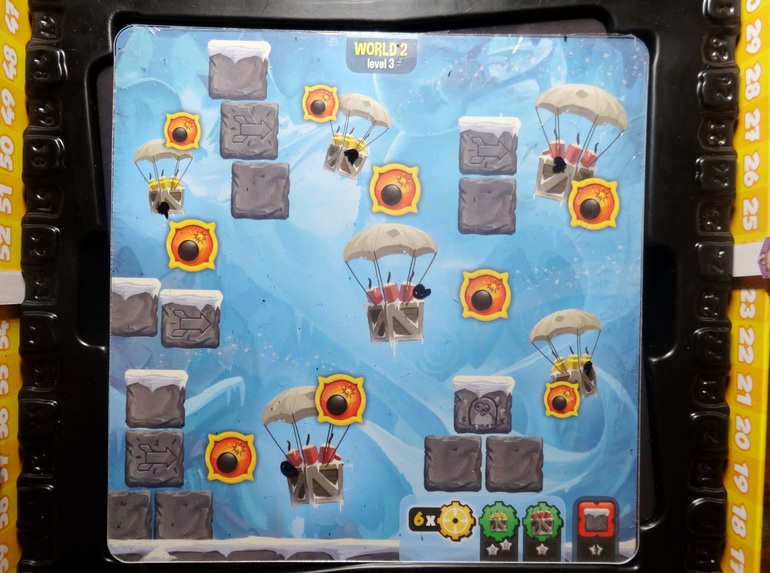 Во второй раз проходить некоторые задания уже проще (особенно после того, как все засыпались на очень сложных). Например ниже на фото я почти справилась. Проблема только в том, что задела один каменный блок, а это, согласно условиям, сразу обнуление всех очков за данный уровень (внизу указан череп вместо штрафных очков).