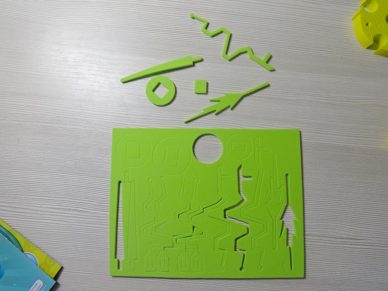 Внутри коробки находятся 3 пластины из которых выдавливаются детали. На первый взгляд их совсем немного, но когда сядешь собирать, оказывается, что вариантов сборки предостаточно. Детали мягкие, как будто бы из вспененой резины (не знаю, как называется этот материал), но достаточно плотные и упругие, хорошо держат форму.