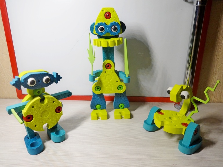 Вообще конструктор подарили младшему (ему сейчас 1.7 г), "навырост" конечно. Роботов он естественно не собирает, но любит вставлять детали обратно в пластины, особенно самые мелкие цилиндрики, поэтому конструктор у нас пока служит еще и пазлом )).
