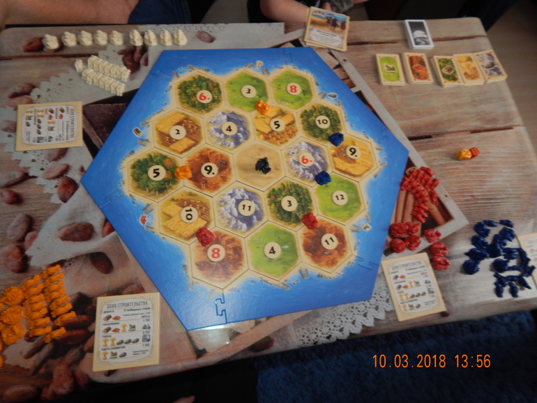 Полтора часа мы прокладывали дороги, основывали поселения и превращали их в города, добывали сырьё и самые веселые моменты, конечно же, торговались, давили на слабые места конкурентов, выторговывали выгоднейший курс обмена и обдирали, как липку, самый жестокий момент - разбойник, мой брат постоянно выкидывал «7» и