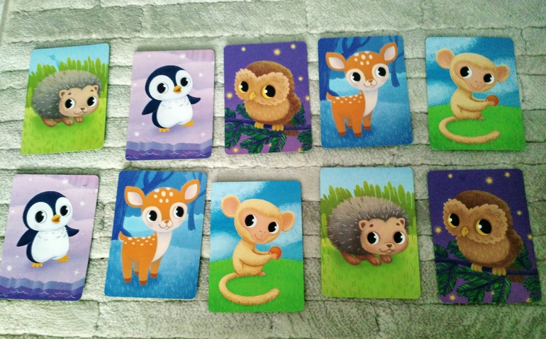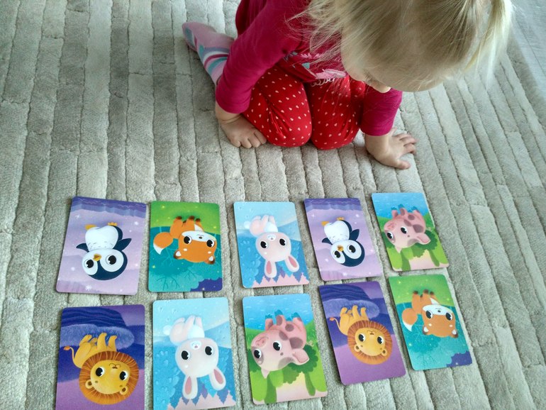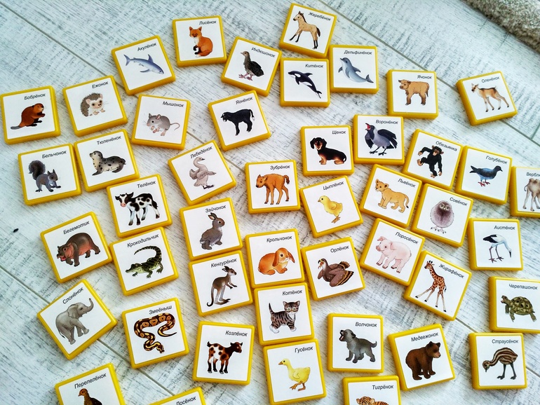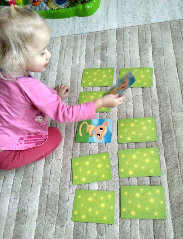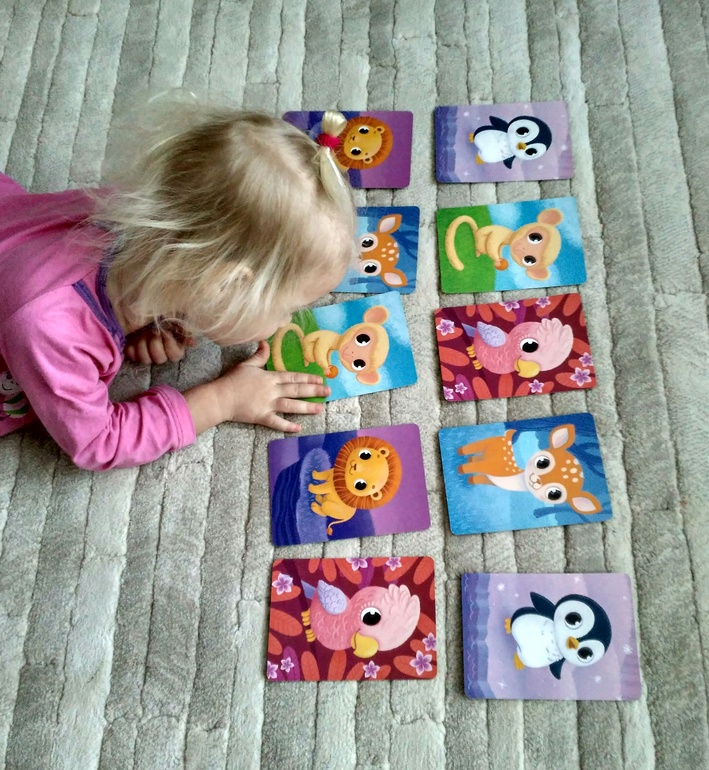 Обычно мы выбираем 5 пар животных для партии, выкладываю и пальчиком Даша показывает пары. Так и зрительная память работает и моторная :