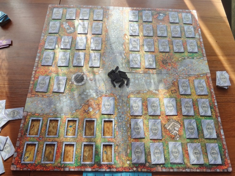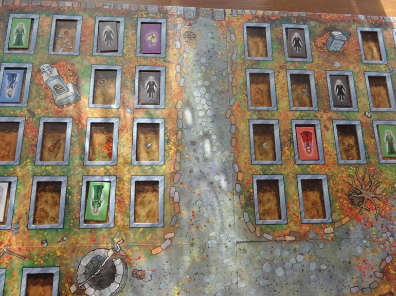 Во время игры кажется, что все могилки уже заняты, что положить очередного вампира уже некуда (хотя мы понимаем, что это не так - количество "спальных мест" равно количеству жетонов вампиров), мы постоянно натыкаемся на недовольные рожицы уже устроившихся на ночь в уютной могилке вампирчиков. После окончания партии мы снимаем все крышки и смотрим, где же были свободные места. А их пруд пруди... Только кто бы помнил где)).