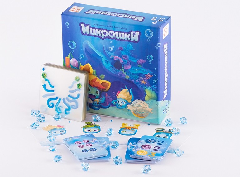 В синем-синем море обитают забавные существа - Микрошки. Они очень любят собирать ракушки и другие богатства подводного мира. Но никогда не знаешь, сколько рук или щупалец понадобится, чтобы взять все найденные сокровища. Но у Микрошек есть уникальная способность - отращивать нужные конечности. Берите прозрачные карты с нарисованными ручками, накладывайте на карту своего Микрошки и соберите все богатства раньше остальных игроков.