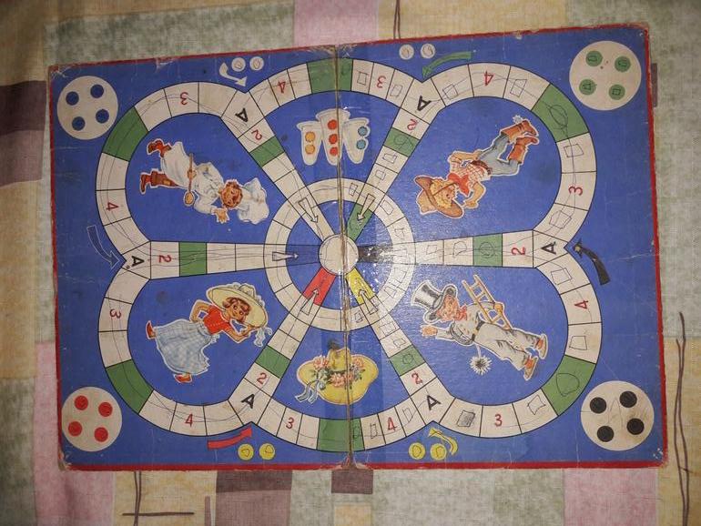 А еще была игра, по-моему, производства ГДР. Не знаю как правильно называлась. Наверное, как-то связано было со шляпками, потому что на коробке была лошадка с повозкой, в которой было много разных шляпок. Но мы звали её «Весёлые колпачки». Играли от 2 до 6 человек (конечно, самый азарт был при 6). Смысл был в том, что колпачки ходят по полю в произвольном направлении и накрывают колпачки соперников. Нашла в закромах поле, изрядно потрепанное. Но нет уже ни колпачков, ни правил. Может у кого-то сохранились правила? Буду признательна. Вот, благодаря ФМ, вспомнила о ней и горю желанием восстановить.