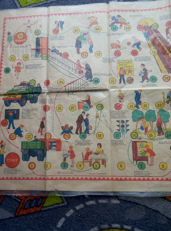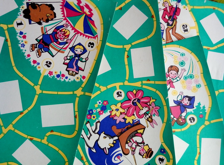 Одной из самых любимых стала игра «С утра до вечера». На тот момент я даже названия ее не знала, спасибо интернету. И как я выяснила, было три версии этой игры. Самая первая была напечатана в журнале «Мурзилка» в 1944 году. Что-то в этой игре есть магическое. Ее любят даже мои дети, хотя мне сейчас уже не интересно играть L. Это единственная игра, которая была со мной все мои переезды. В детстве, когда все было растеряно, то кубик лепили из пластилина, фишками были пуговицы. Мама моя недавно эту игру вспоминала, она считала ее потерянной. Была очень удивлена, что эта настолка еще существует.