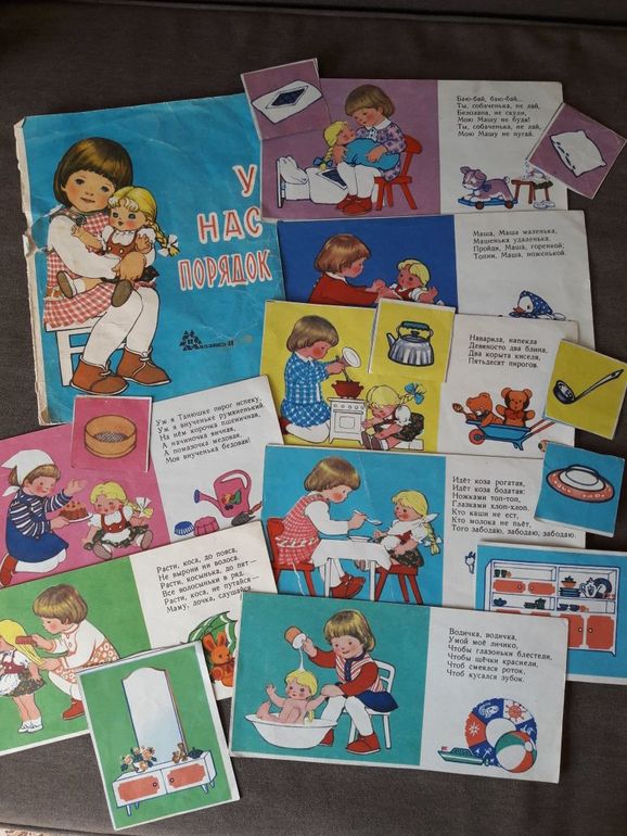 По сути это очень милое "девчачье" лото про дом, с потешками и замечательными картинками с советскими реалиями. Заметили, какое трюмо??!! У бабушки стояло как раз такое :) Рассчитана игра на возраст 3- 5 лет. Практически лото Дом от djeco только 28 лет назад.