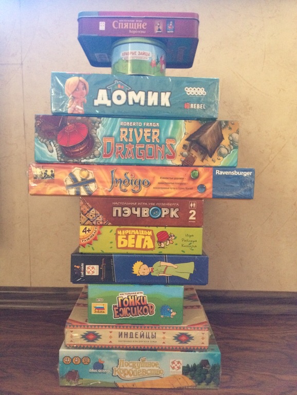 P.S. В этот список не вошли несколько игр, о которых я просто не могу не упомянуть. Запретная пустыня, Лётчик Луи, Сумасшедший лабиринт-это те игры, которые у нас уже очень давно и они нами нежно любимы, они как-бы вне всяких списков. Можно сказать, что это игры, проверенные временем в нашей семье.