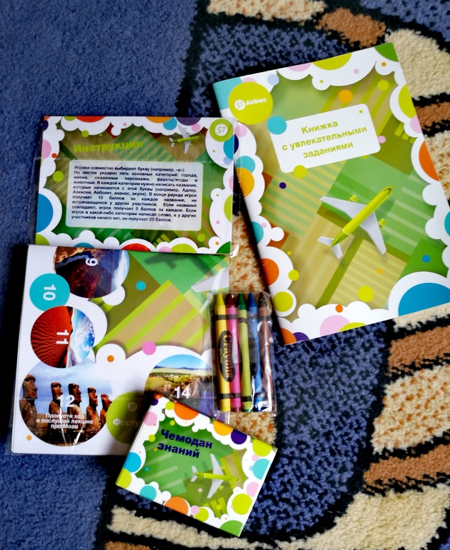 В самолете мы получили приятный бонус от S7, мешочек с дорожными играми. Игр там несколько, это и ходилка и вроде викторина, и еще что-то. В целом мелочь, но приятная такая мелочь))) . Пригодится.